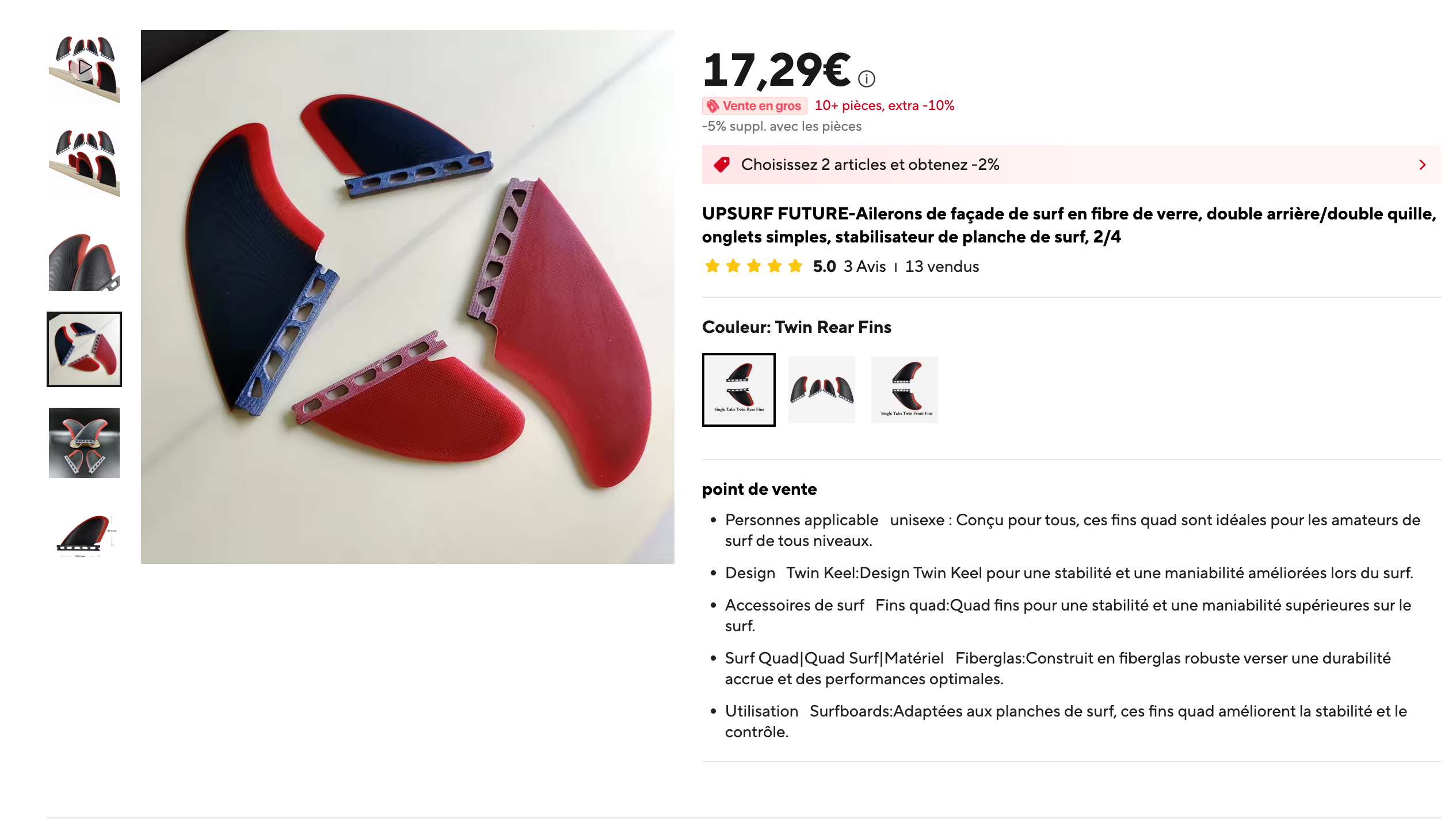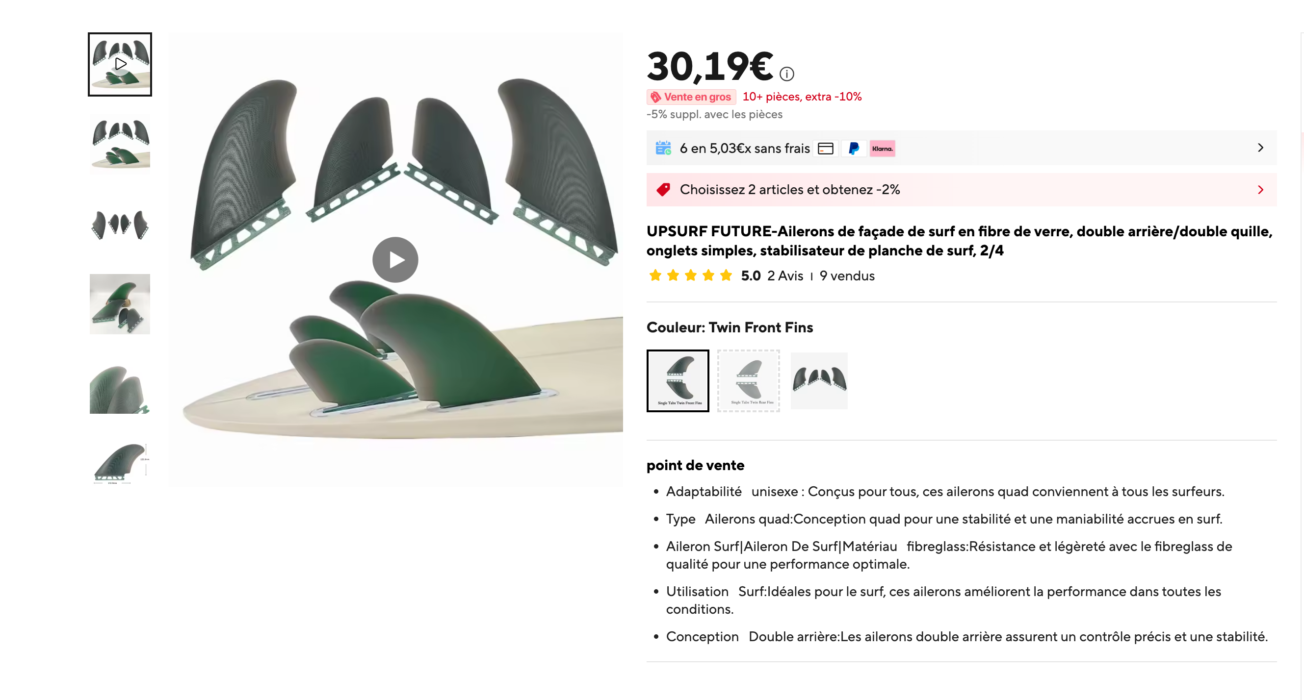 Sur "Laure Calamy", je surfe en supertwin chose pour laquelle elle n'est pas prévue, mais ça marche très bien. Elle m'a été livrée avec un set bite-couilles (un grande dérive centrale et deux side, pas essayé encore, flemme et j'attends un peu de taille). La planche est top, mais j'ai envie de la tester en quad, pour quand ça va vite, ou alors qu'il faut bien accrocher.