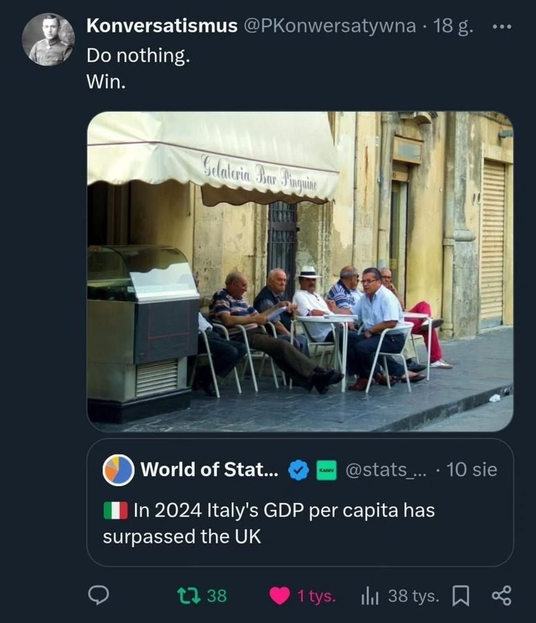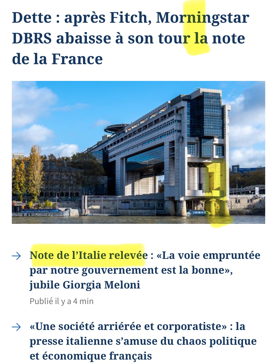 Bikou kimo l'Italie a surtout bénéficié de 200 milliards d'emprunt commun européen postcovid. Et c’est ce qui a causé la dégradation de la note française ? 🤨 Les emprunts ne rentrent pas dans le GDP, mais l’EU est merveilleuse , c’est ça qui compte