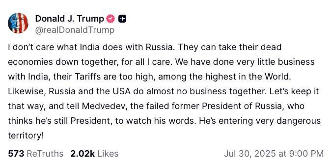 pezronf Droits de douane: Donald Trump impose 50% de taxes sur le Brésil https://www.lefigaro.fr/conjoncture/droits-de-douane-donald-trump-impose-50-de-taxes-sur-le-bresil-20250730?utm_source=app&utm_medium=share&utm_campaign=android_Figaro Et hop le Brésil désormais a fond avec les chinois, bien joué
