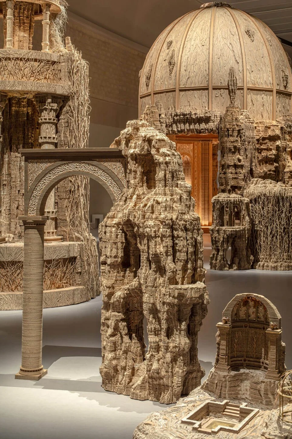 Elle fait des oeuvres étranges et très poétiques en... carton. Comme des ruines englouties et des forêts étranges, c'est beau de loin, très riche de près, plein de détails, et très original. Et l'usage du carton est bluffant.
