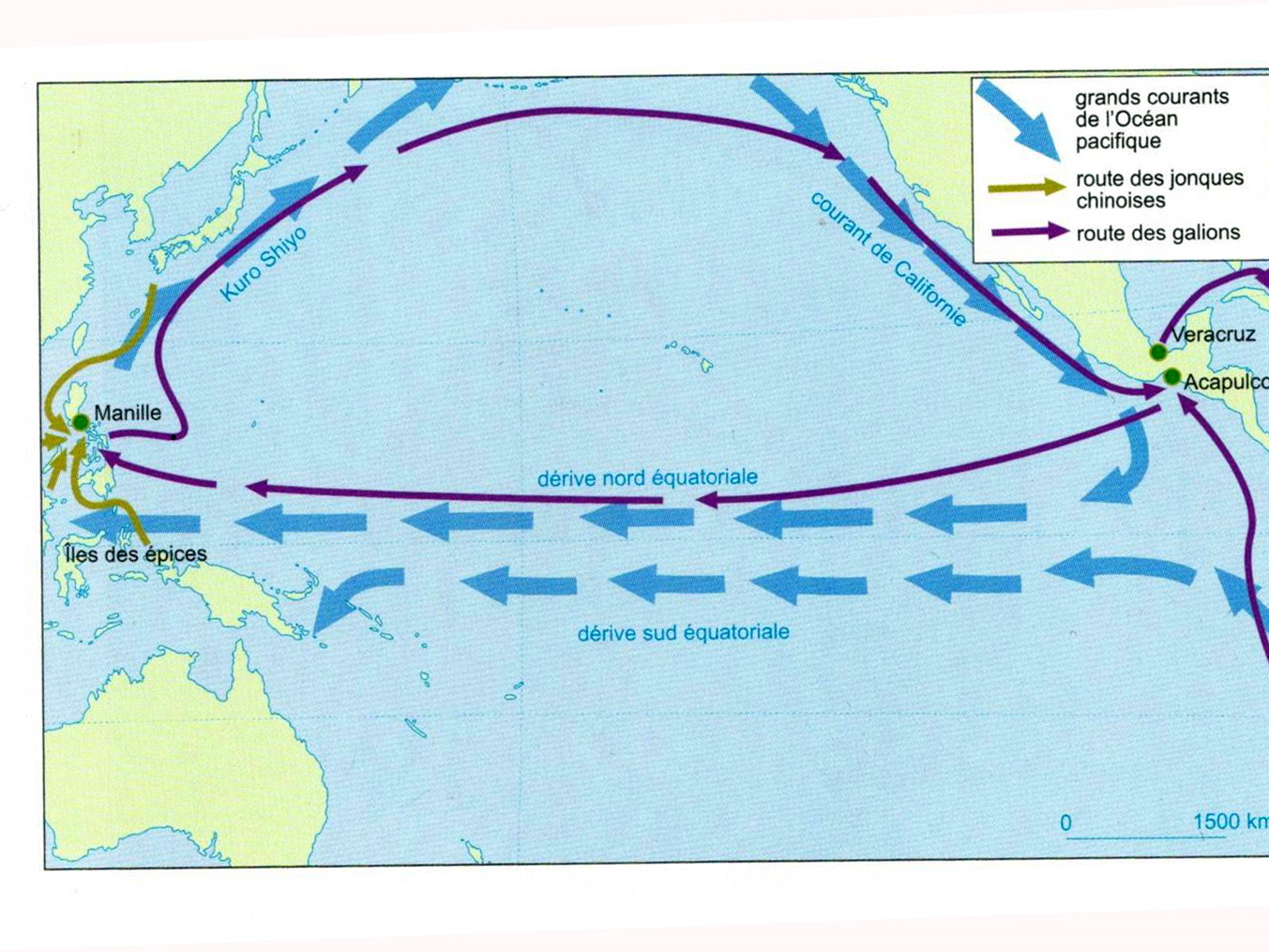 A noter que les Espagnols vont galérer pendant plusieurs décennies dans le Pacifique: le voyage aller (celui de Magellan) est facile, mais pas le retour. Le 1er aller-retour est effectué par Legazpi en 1565. Il trouve la solution en passant par le nord du Pacifique.