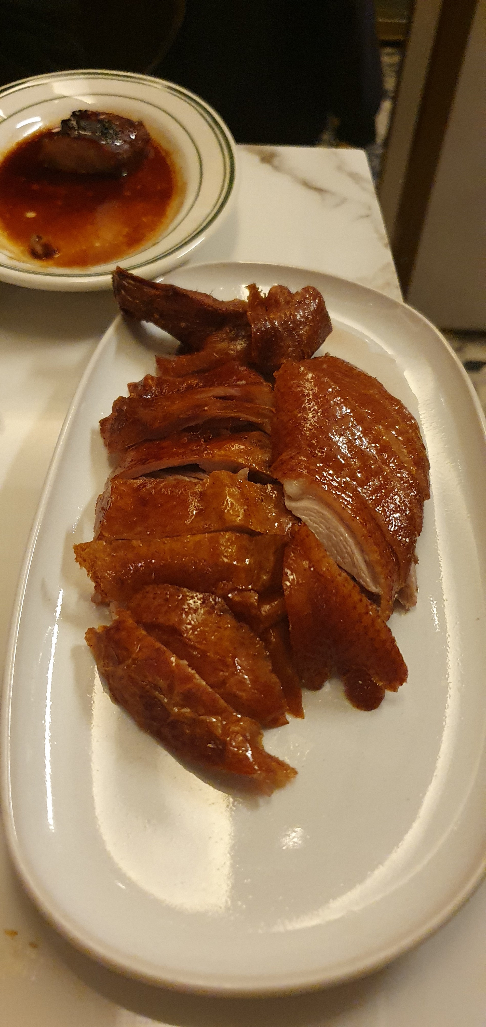 Le canard laqué à réserver 48h avant, à 68 balles, ultra fondant, top et franchement partageable à deux.